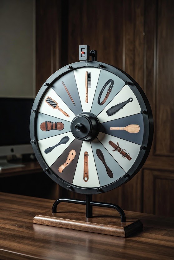 Hairbrushes, paddles, hand, belt, strap, slipper, wooden spoon, all checked as okay, no hard limits, each one a promise of the sting I craved. It was like choosing my own adventure from a wheel of terrifying, blissful, punishment. I should have just let the computer decide for me, I’m sure there’s an a.i. for that.